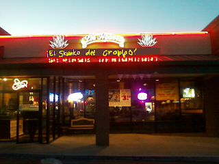 Waiter: Welcome to El Skunko del Crappo; my name is Sanchez and I will be your waiter. And what would the happy couple like to drink this fine day?